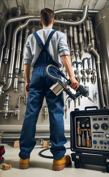 Réalisation de réseaux, PVC, chaud, froid, air comprimé, fluides.